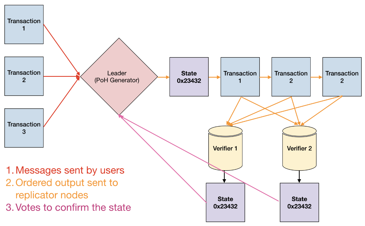 - 状态签名发布:Leader 将执行后的交易结果和最终状态的签名发布给名为“验证者”(Verifiers)的复制节点。