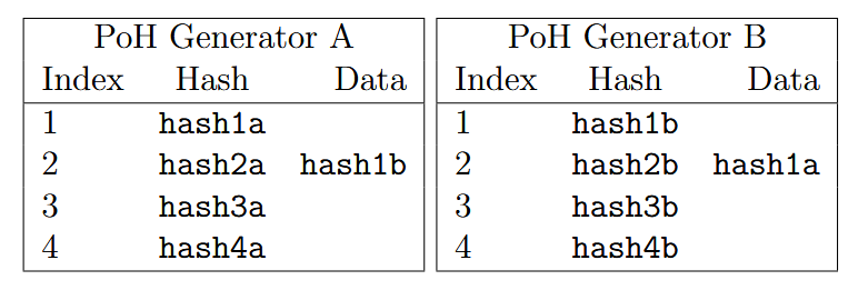 假设有两个 PoH Generator A 和 B: