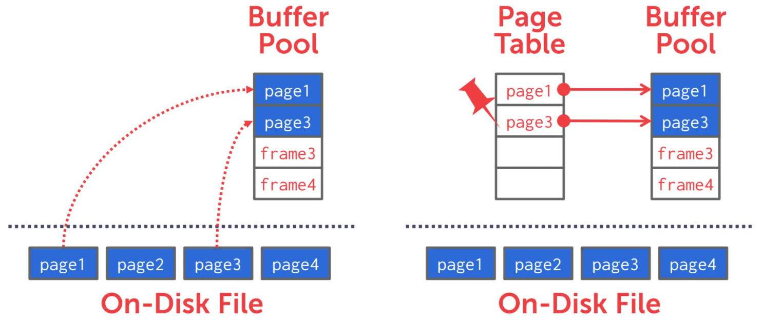 - Page Table 是 Page ID 到 Buffer Pool Manager 中 Frame 的映射。它只需要在内存中,不需要存储在磁盘上。