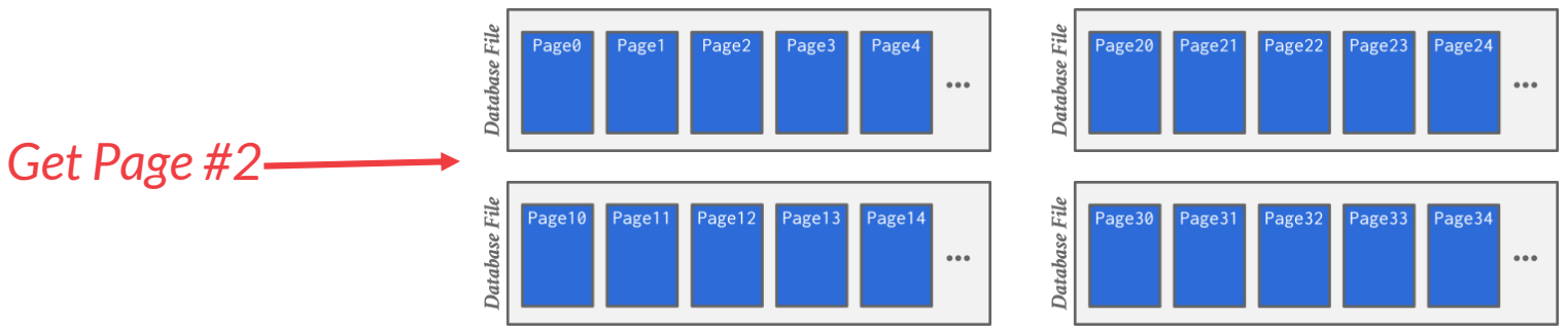 - Page Directory 是 Page ID 到数据库文件中 Page 位置的映射。它必须记录在磁盘上,以便 DBMS 重启时能直接读取它。