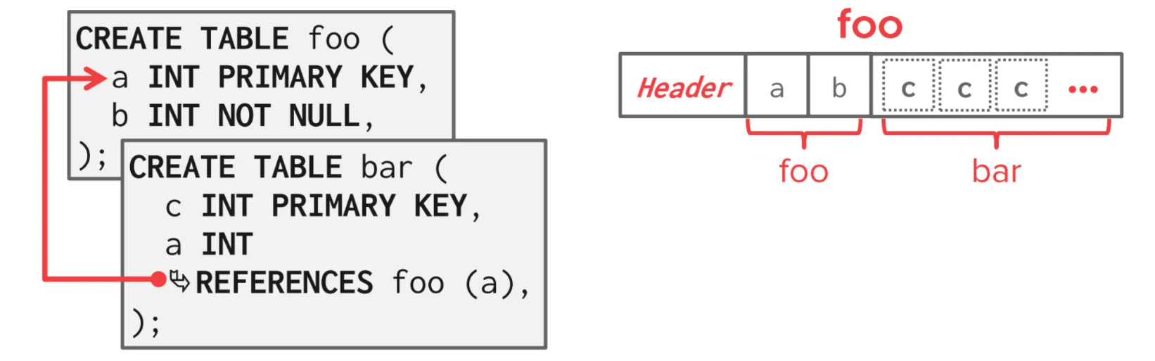 如果两个表之间有外键的关系,可用将两个表的 Tuple 储存在一起。这样可用潜在地减少 IO,但也会增大了更新 Tuple 的开销。