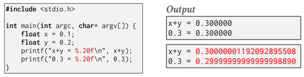 和 C/C++ 类型一致,按 IEEE-754 规定直接存储。这样通常比 Arbitrary Precision Number 更快,但可能有舍入误差。